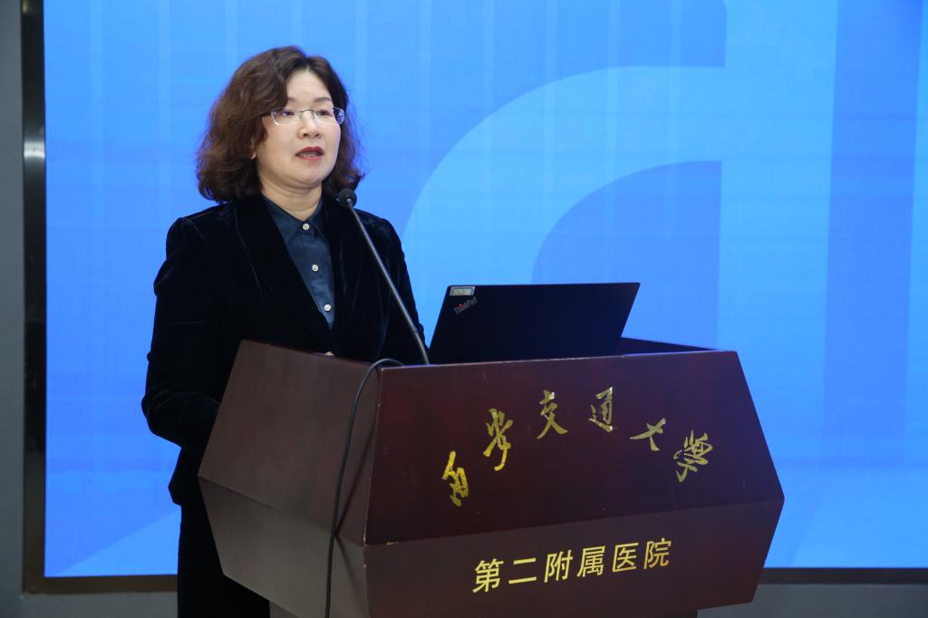 刘庆新副部长代表学校党委宣读任免文件,聘任刘明、郭卉为第二附属医院副院长,任命刘明、郭卉为第二附属医院党委委员,免去高亚、李小鹏第二附属医院副院长职务。