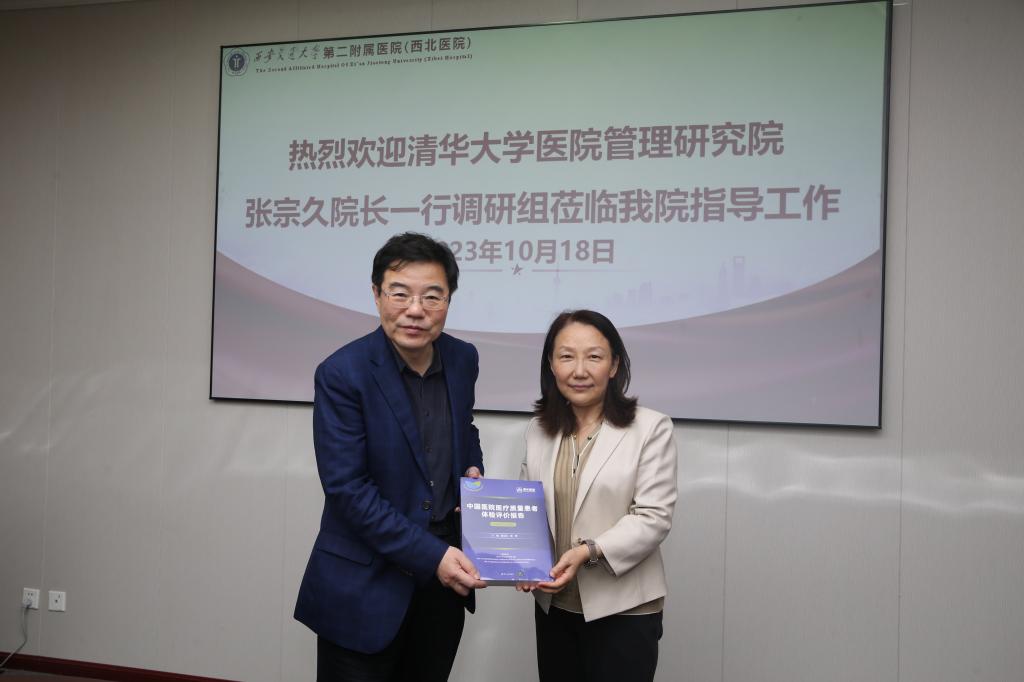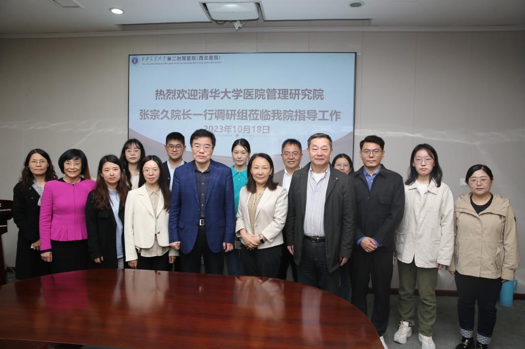 刘昌书记首先介绍了我院的基本情况,重点围绕着调研内容阐述了西北地区肝癌流行病学特点、我院肝癌规范化诊治现状和我院肝癌诊疗质量管理及目标。通过问卷调查、现场调研、座谈会及专家访谈等形式,本次调研活动取得圆满成功。座谈中,张宗久教授作为原国家卫生健康委员会医政医管局局长,对我院长期在医疗卫生领域所作出的突出贡献和卓越成就予以肯定;癌症的防治工作是健康中国行动的重要组成部分,张宗久教授希望交大二附院在癌症防治工作继续发挥引领和推动作用,并且期望清华大学医院管理研究院与交大二附院在癌症特别是肝癌、鼻咽癌、宫颈癌等方面积极开展人群队列研究,深入探索、合作共赢,早日取得实质性成果。