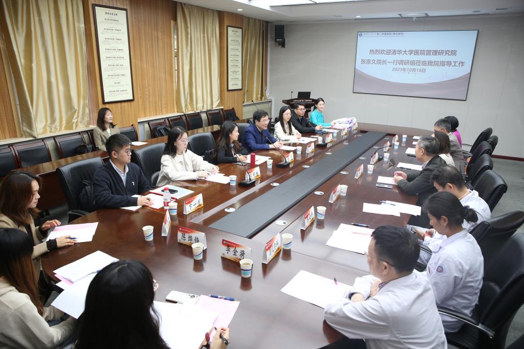 2023年10月18日张宗久教授及其团队成员一行至我院开展肝癌规范化诊疗现状及精准管理制度体系建设的相关调研工作。党委书记刘昌、医疗副院长高亚、医务部主任刘明、质控办主任李西英及相关临床科室专家及职能部门负责人参加了会议。