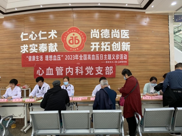 2023年10月8日,是第26个“全国高血压日”,今年的主题是“健康生活理想血压”。为了增强高血压预防意识,减少高血压引起的关并发症,提高群众健康素养。我院心血管内科医护专家团队在大明宫院区门诊大厅开展义诊活动。