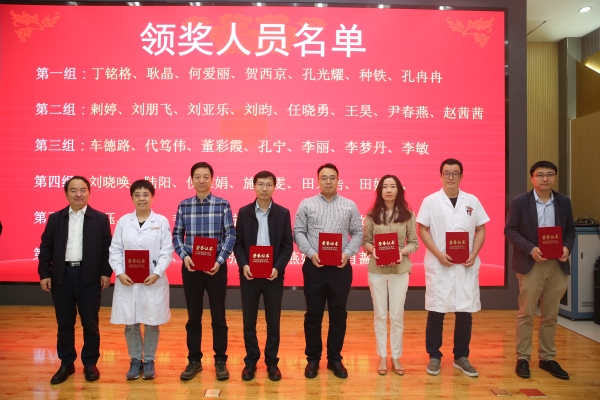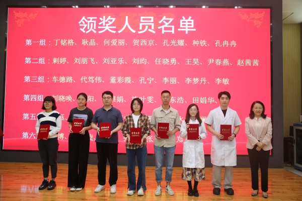 高亚副院长宣读了医院获2023年国家自然科学基金资助人员名单并颁奖。获资助人员代表何爱丽教授和刘亚乐副研究员分别介绍了自己的经验。胸外科李少民主任、消化内科王进海主任也分别介绍了科室支持申报工作的做法和科学研究创新的经验。