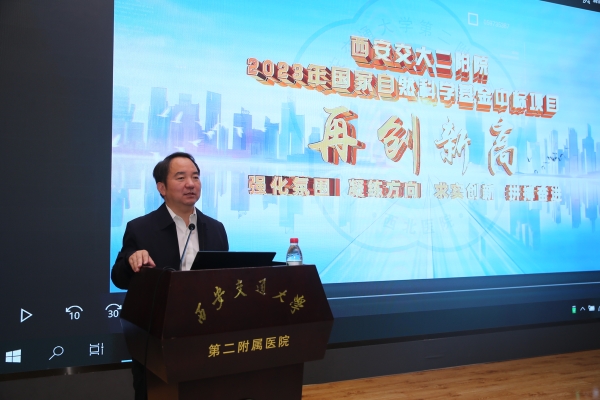 2023年9月28日下午,我院在多功能厅召开了“西安交通大学第二附属医院科技大会暨国家自然科学基金申请2023年总结和2024年动员大会”。西安交通大学科研院副院长马现仓教授出席会议并讲话。会议由我院科研部夏育民主任主持,刘昌书记、高亚副院长、张蓬勃副院长、李文博总会计师及全院科室主任、科研秘书、博士生导师、专职科研人员等200余人参加了会议。