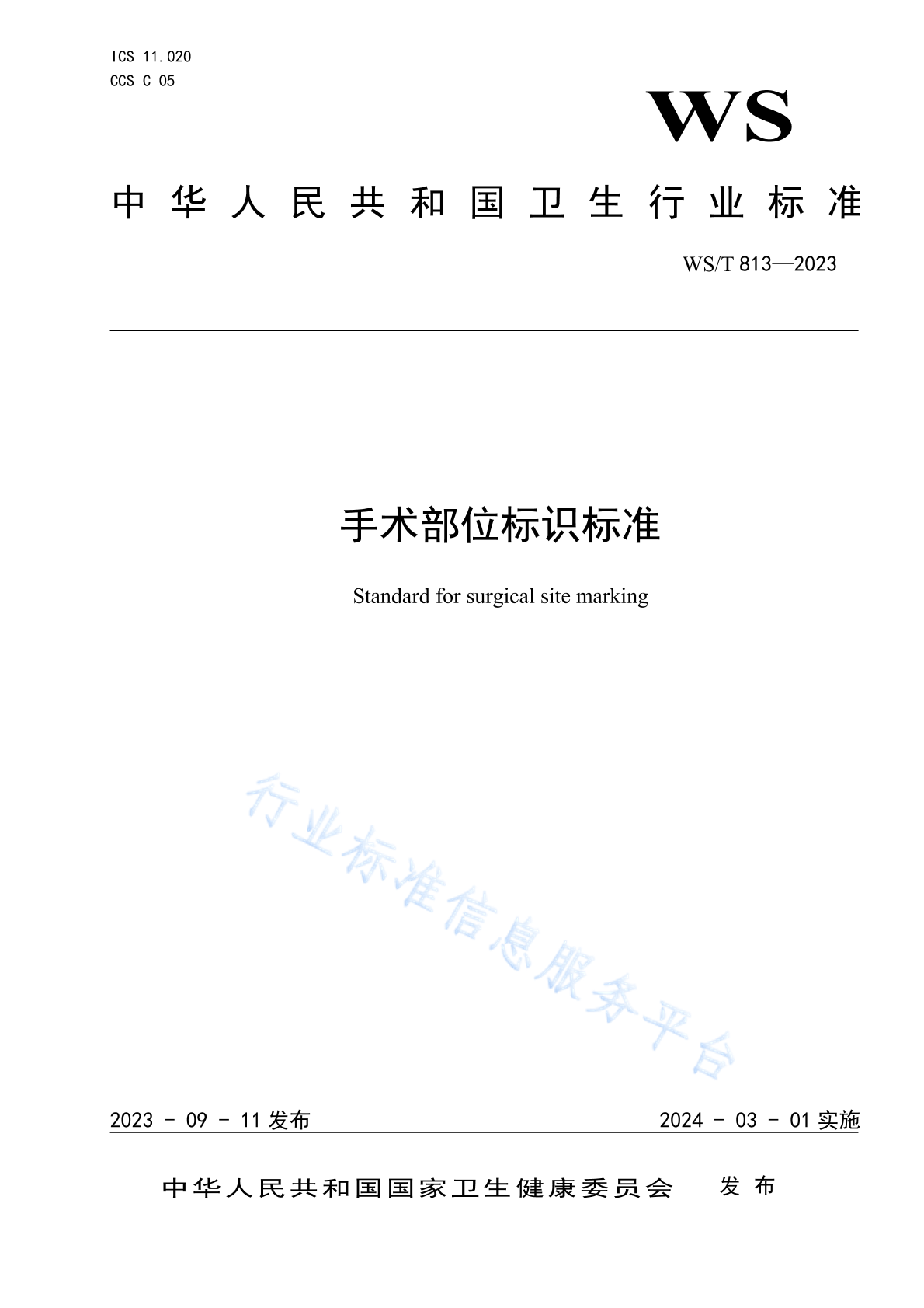 该标准规定了手术部位标识的原则、人员、时间、工具和方式等内容,适用于开展手术的各级各类医疗机构。有创操作部位标识可参照执行。