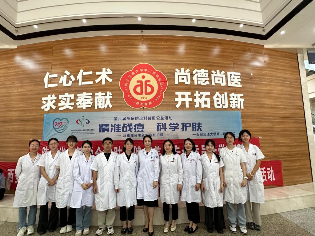 西安交通大学第二附属医院皮肤病院激光美容中心为此次活动进行了精心策划和筹备,在宣传部、大明宫分院门诊办公室等部门大力支持下,9月21日在大明宫院区开展了“中国痤疮周”义诊及科普直播活动。参加此次义诊活动的有皮肤病院副主任,激光美容中心负责人曾维惠教授,痤疮专病组成员刘艳、任建文、霍佳,王媛、李尤宝、朱瑜医师以及皮肤病院研究生等众多医护人员,此次活动还得到了皮肤病院耿松梅主任的大力支持。各位老师们为患者们解答“痤疮”相关问题并推荐合理治疗方案,同时借助展架、彩页等宣传痤疮规范诊疗知识,普及痤疮皮肤日常护理保健方法。