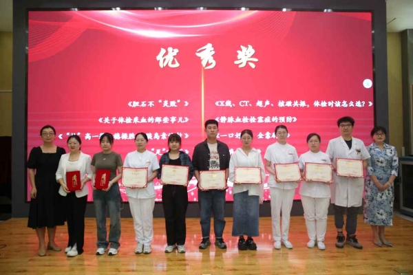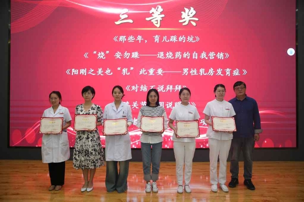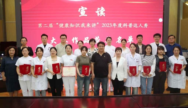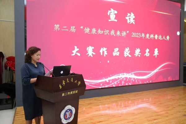 买秋霞宣读了第二届《“健康知识我来讲”2023年度科普达人秀》的获奖名单。共有一等奖作品1个,二等奖作品3个,三等奖作品6个及优秀奖作品9个。张平阳、党变玲、陈海文、张耀婷、王妮分别为一等奖、二等奖、三等奖以及优秀奖获得者颁奖。