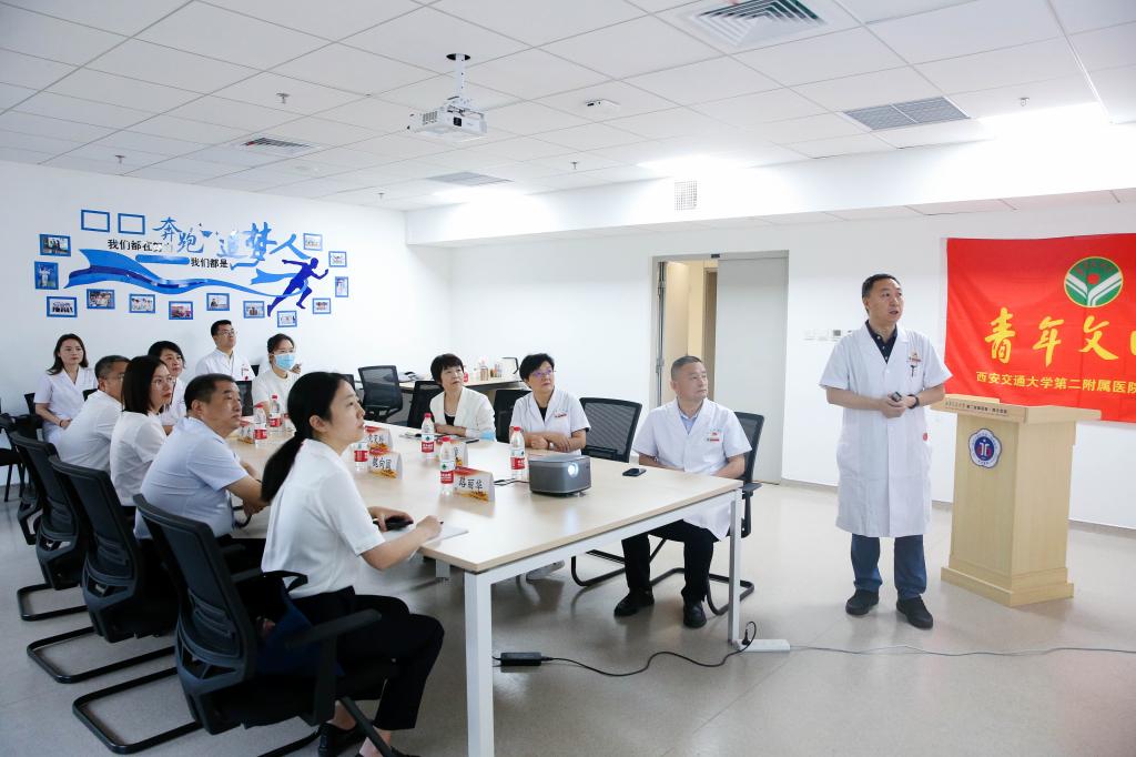 魏向国院长介绍了干部教育培训学院的历史发展和基本情况,就省委党校的常规班次、以中国特色社会主义理论为中心,党的理论教育、党性教育、陕西发展和能力提升为主要内容的“一个中心、四个面向”教学布局等进行了全面介绍。同时,指出医院要结合行业特征,高度凝练党建特色亮点进行多形式宣传推广,并就双方合作共同促进理论与实践结合、党建与业务互融互促的意向与思路进行了初步探讨,希望通过合作能更好服务人民健康。