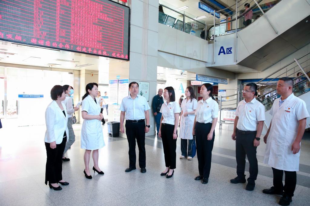 魏向国院长一行前往我院门诊部和康复医学科实地调研。门诊部党支部书记、主任王丽娟从门诊分布、日门诊量、门诊流程等方面介绍了医院门诊基本情况,并就门诊党支部以患者为中心开展的科普宣教、便民服务、志愿行动等党建特色活动进行了分享交流,表示将不断优化诊疗流程,改善患者就医体验,方便患者看病就医。康复医学科党支部书记、副主任袁海峰简要介绍支部日常活动开展情况和学科重点工作,指出要实现“扎根西北、服务全国、国内一流,打造西北最强康复医学中心”的学科品牌定位,必须强化党建引领作用,把党建工作全面融入学科发展大局,争取创建成功国家青年文明号,实现党建工作价值创造和学科品牌提升。
