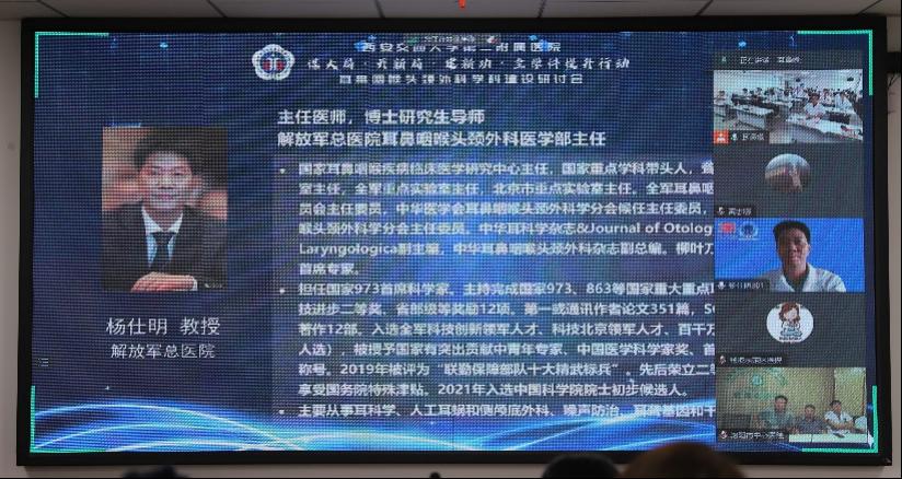 本次研讨会特邀中华医学会耳鼻喉分会现任主任委员首都医科大学附属北京同仁医院副院长黄志刚教授,中华医学会耳鼻喉分会前任主任委员上海交通大学附属第九人民医院院长吴皓教授,中华医学会耳鼻喉分会名誉主任委员北京协和医院高志强教授,中华医学会耳鼻喉分会候任主任委员解放军总医院杨仕明教授进行线上指导。本次研讨会由院党委书记刘昌教授任名誉主席,院党委委员、李文博总会计师现场出席并担任大会主席,任晓勇主任为大会执行主席。我院党委委员、运营管理部刘鹏涛主任及耳鼻喉科全体医护人员线下参与本次会议,新疆自治区人民医院、洛阳市中心医院、杨凌示范区医院耳鼻喉科相关人员线上参会,参会人员共计100余人。