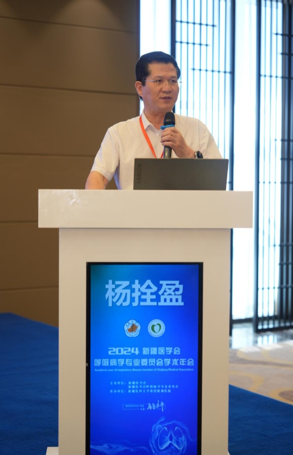 8月17-18日,新疆医学会呼吸专委会2024年学术年会在乌鲁木齐市召开。新疆地区各地州医院呼吸与危重症医学科医护人员400余人参加会议。西安交通大学第二附属医院呼吸与危重症医学科主任杨拴盈受邀并做了《肿瘤微环境在肺癌免疫治疗中的作用及研究进展》讲座,详细讲解了肿瘤微环境在肺癌免疫治疗方面的前沿进展和策略,并对肺癌的未来免疫治疗进行展望总结。