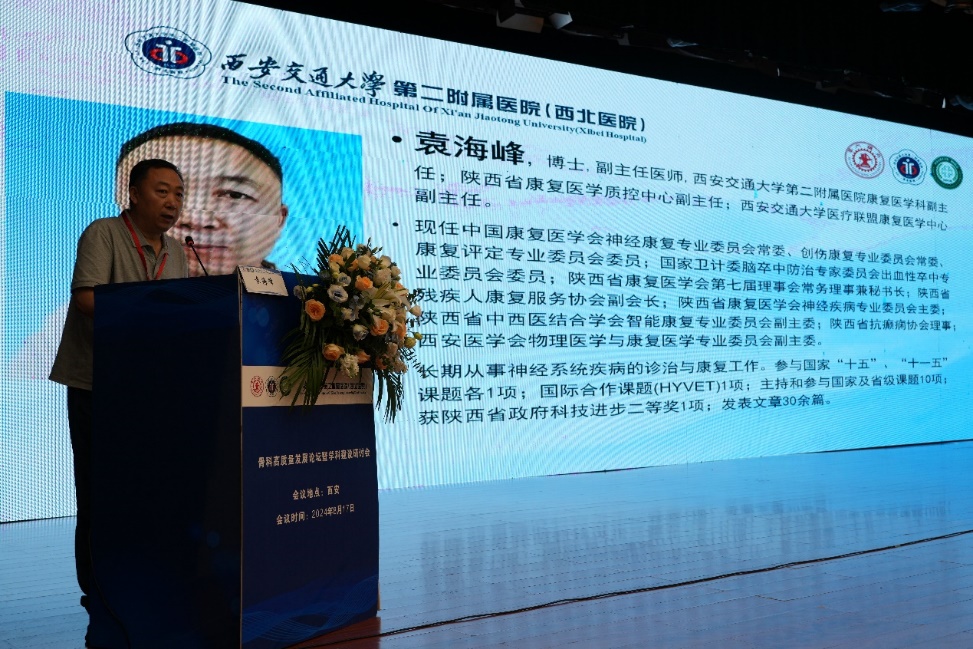 陕西省康复医学会秘书长袁海峰教授致辞称本次交大二院骨科中心脊柱与骨肿瘤分论坛暨陕西省康复医学会脊柱脊髓专委会年会的学术论坛,是骨科同道们分享临床经验、探讨前沿技术的宝贵机会,希望大家学有所获,不虚此行。