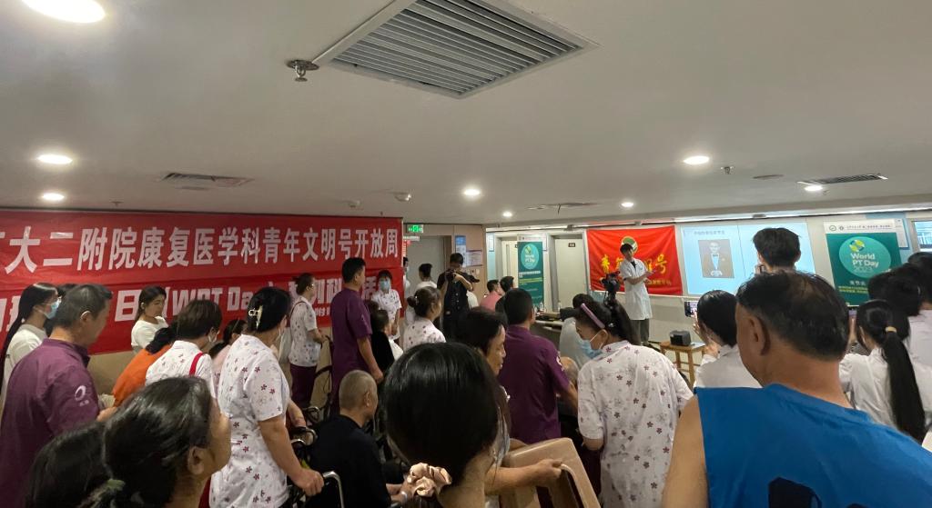 西安交大二附院康复医学科作为陕西省青年文明号集体,正在积极创建国家级青年文明号,在每年9月8日“世界物理治疗日”(WPT Day)来临前,积极组织青年文明号开放周系列活动。9月7日下午17:00在康复医学科病区成功举行了“关节炎与运动”科普活动,活动由雷晓辉治疗师长主持,鲁雷、王斌治疗师为主要宣教人,理论实操结合宣讲,线上、线下同时进行,内容通俗易懂,赢得了在场患者和直播间患者的一致好评。