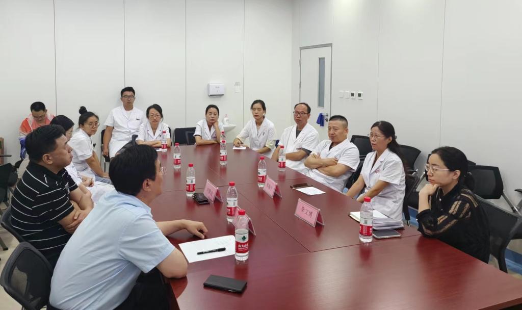 韩主任代表科室汇报了学科目前发展现状、困境,对标国内一流情况以及学科未来的目标规划等。穆主任结合韩主任汇报的学科目前情况和发展,进行了指导:在培养提升人才方面,需要加大力度增加奖罚制度,鼓励督促青年人及中级职称人员在科研方面提升自己;医疗业务方面争取医院政策支持,开展临床新项目,实现二级学科的价值;同时他还分享了唐都医院输血科的发展经验和管理经验。在讨论环节,大家积极踊跃发言,从科研、医疗工作多方面向穆主任提问,科室学科方向、科学研究的经验非常值得我们借鉴和学习。总会计师李文博,运营办刘鹏涛主任分别从学科发展的不同方面提出了不少具体的指导性建议。