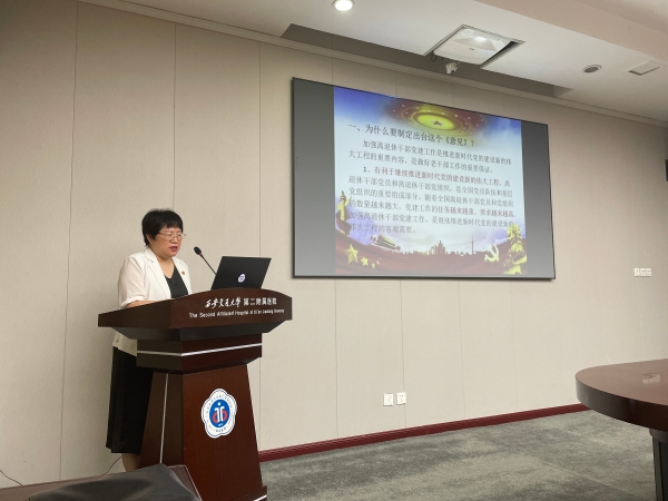 在集中学习环节,全体与会人员观看了新闻联播《第十一次全国归侨侨眷代表大会在京开幕习近平等党和国家领导人到会祝贺》视频。党变玲副书记领学了“统战百科”知识中华侨、华人、归侨、侨眷的概念和有关政策解读及国内TOP20医院党建简报(总第13期),离退休党总支书记范亚利领学了中共中央办公厅《关于加强新时代离退休干部党的建设工作的意见》。