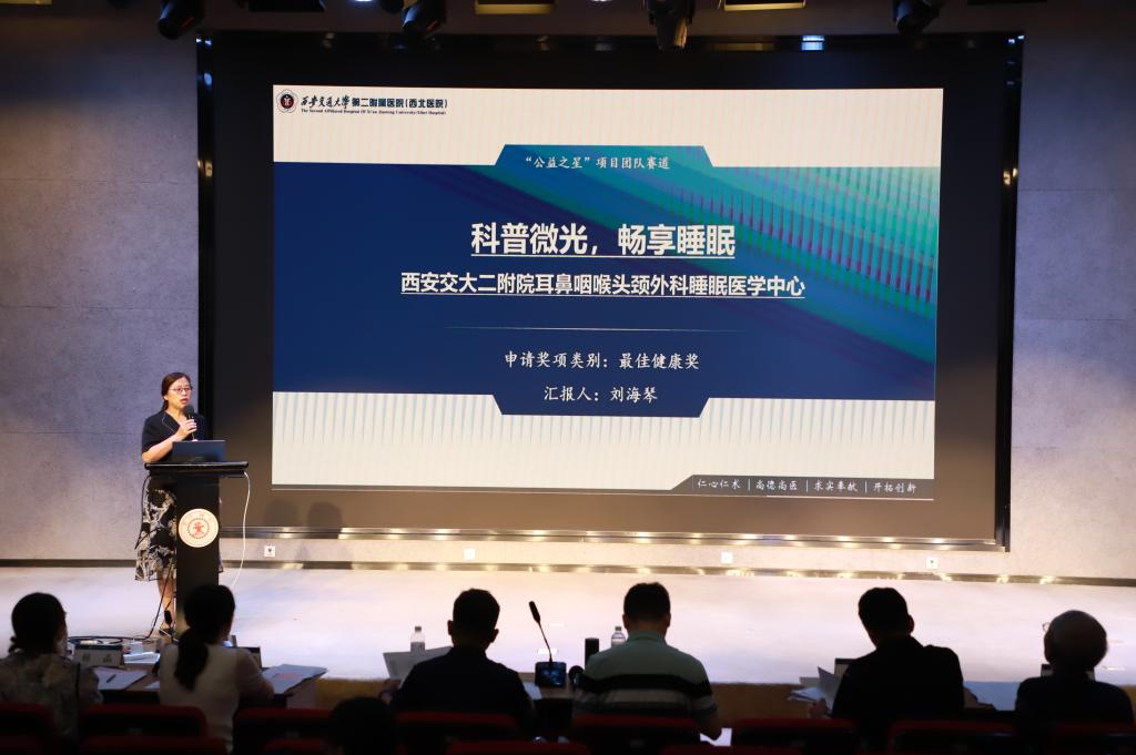 西安交通大学第七届“公益之星”大赛自5月初启动,开设个人赛道、项目团队赛道和创“益”赛道,吸引了众多在校同学、社团组织、公益项目小组及教职工报名参赛。经过前期材料筛选、评委初审及网络投票等多重角逐,最终共有17位报名个人和14组公益团队及2组创“益”赛道项目入围决赛。“科普微光,畅享睡眠”项目是由我院耳鼻咽喉头颈外科病院睡眠中心发起实施,进行睡眠医学知识科普的志愿活动。本项目通过科普文章、公益讲堂、义诊咨询、高校开设睡眠课程等形式进行活动,普及健康睡眠知识,该项目获交大学雷锋志愿活动优秀项目以及交大第七届公益之星最佳健康奖。