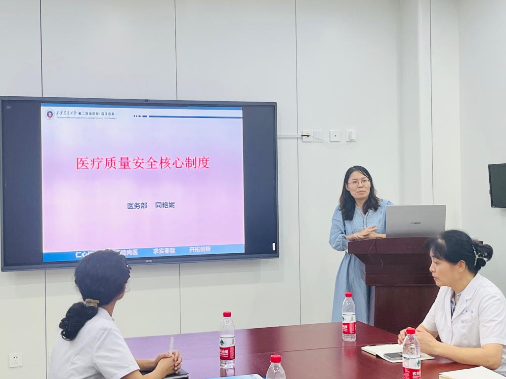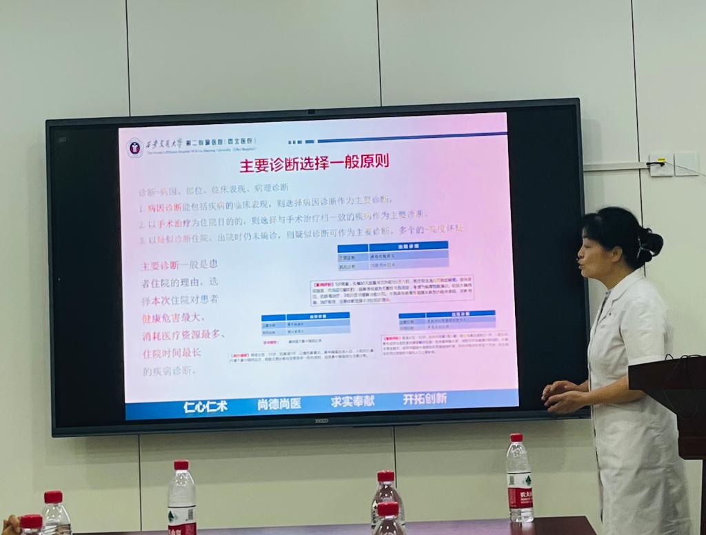 医保办副主任郭景华从临床角度具体解读了住院医保有关政策与业务流程、DRG付费政策等。医疗信息管理办公室李明主任详细讲解了病案首页的填写以及病例书写的基本规范和要求,并指出规范病例书写的必要性。院感专职人员刘婷从科室各个方面详细介绍了院感的重要性,以及作为临床科室今后在院感方面应该注意的问题。最后由医务部副主任同艳妮详细解读了医疗质量安全核心制度,并强调了18项医疗核心制度的重要性。