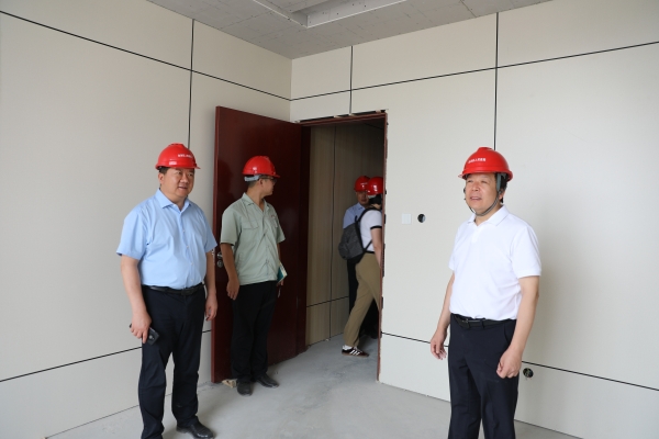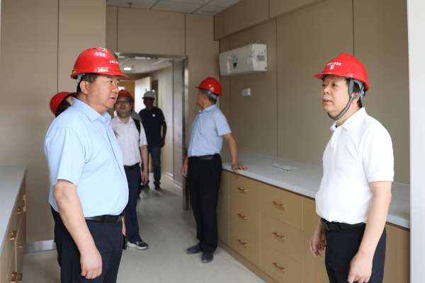 张文峰书记介绍了建设情况、建设工期及院区整体设计规划,张蓬勃院长、冯东书记实地勘察了医院病区、处置室等区域的材料使用、施工进度、功能分区,对设计不合理的环节现场提出整改意见。