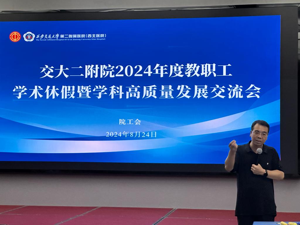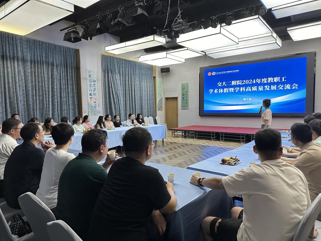 24日下午,学科发展交流座谈会在太白熙岸酒店举行,工会主席陈海文做大会开场发言,对目前工会开展的关爱职工及其子女的举措进行了介绍,今年暑期托管班为职工解决后顾之忧,让大家能够安心工作,“医小苗”系列活动拓宽了孩子们的视野,为孩子们暑期社会实践搭建平台,这些举措备受青年教职工的普遍好评。陈主席还就院工会十送党政关怀、护航劳动者健康志愿服务、友好协作工会建设、名医天团工作站下基层等创新和亮点工作进行了宣传和动员,并鼓励大家根据个人需求和业余兴趣,积极参与部门工会举办的活动、参加工会下设14个职工协会的活动,锻炼身体的同时缓解工作压力。