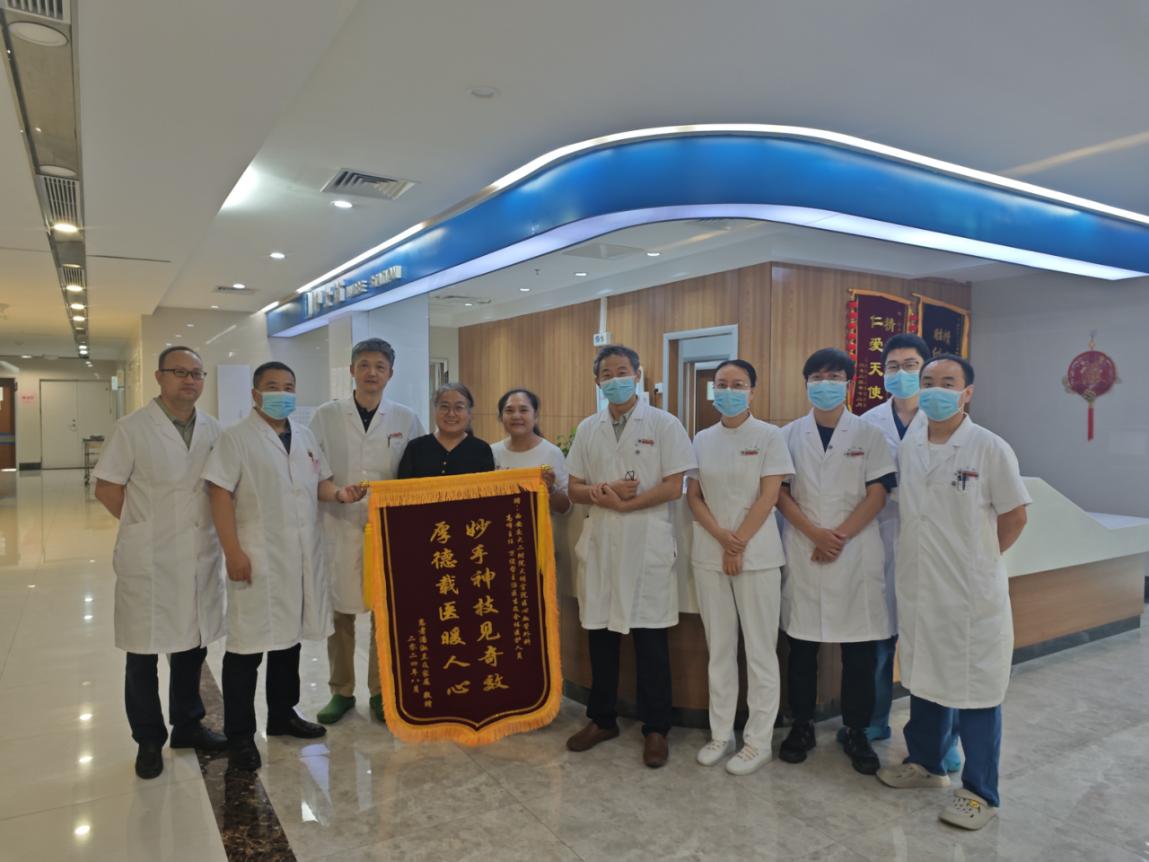 “两年来,因身体不适反复住院治疗,我已经对生活失去了信心,当地医生也觉得希望渺茫,让我一度陷入绝望。但交大二附院心血管外科的医生他们从未放弃我,不但给我做了手术,而且术后恢复挺快,非常感谢你们团队救了我”76岁的潘奶奶即将出院时说到,并专们门让子女为医生们送上了锦旗。