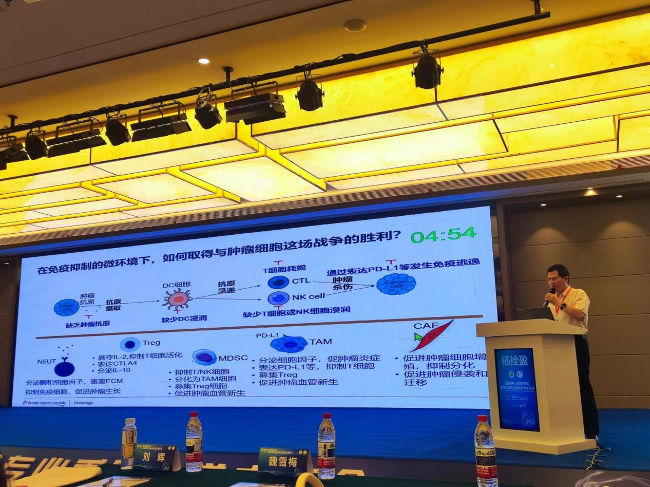 我院呼吸与危重症医学科主任杨拴盈受邀做了《肿瘤微环境在肺癌免疫治疗中的作用及研究进展》讲座,详细讲解了肿瘤微环境在肺癌免疫治疗方面的前沿进展和策略,并对肺癌未来免疫治疗作了展望总结。