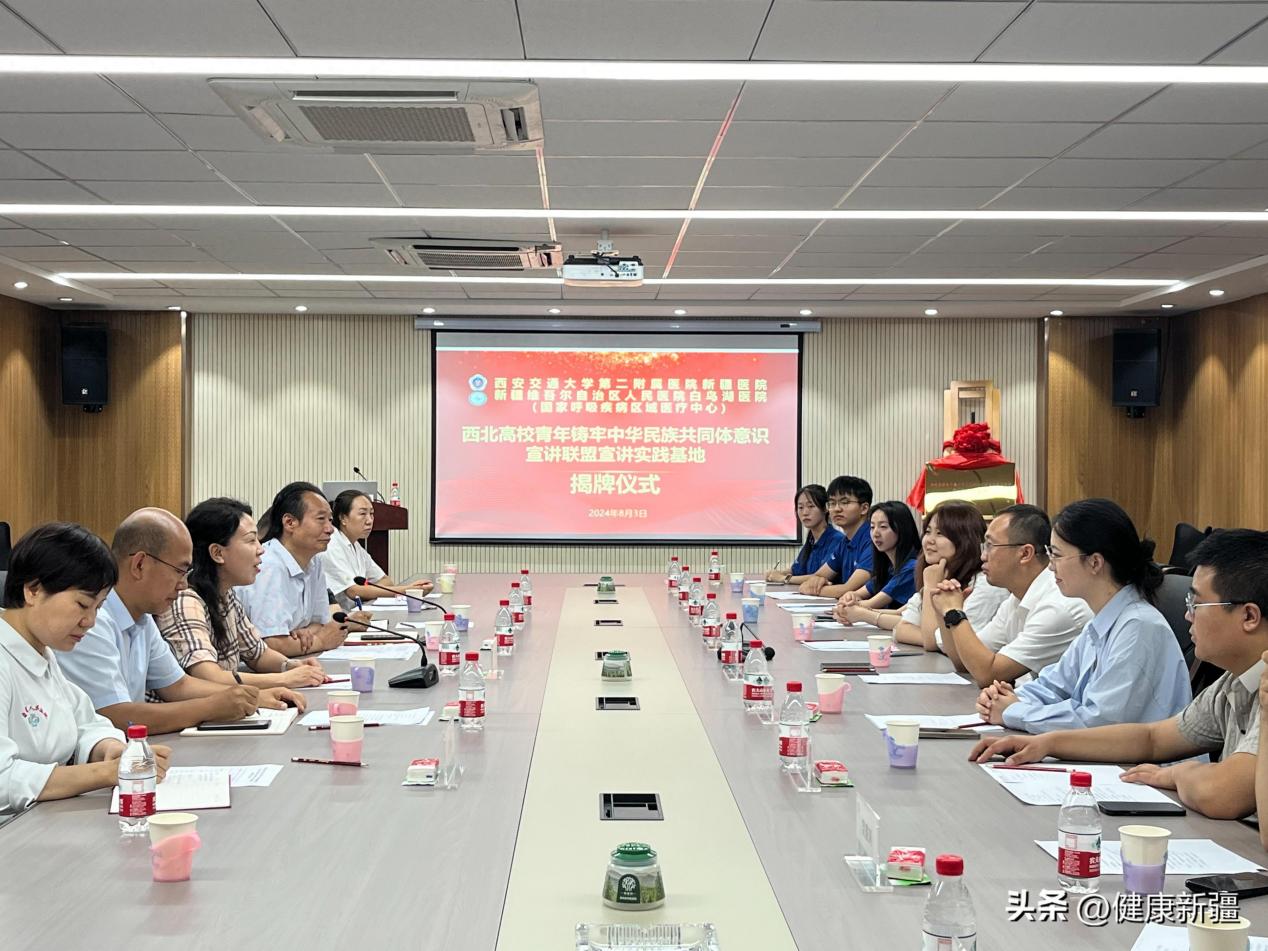 8月3日“西北高校青年铸牢中华民族共同体意识宣讲联盟宣讲实践基地”揭牌仪式在西安交通大学第二附属医院新疆医院举行。