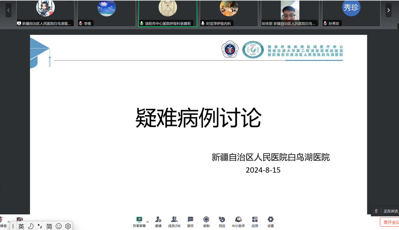 8月15日19:30,西安交通大学第二附属医院呼吸与危重症医学科如期主持召开周四线上疑难危重病例讨论。病例由新疆医院提供,驻疆专家李维做主要发言。患者曾在疆内两家县级医院治疗,均无明显好转,转至新疆医院。经三地各级医师讨论,明确诊断,给出诊疗方案,经治疗患者症状明显好转,复查胸部CT病变明显吸收。这次病案讨论,输出医院学科与国家呼吸区中建设项目医院(新疆医院、洛阳医院)约100余人参加,疑难危重症讨论制度,达到了尽早明确诊断、制定最佳治疗方案、提高医疗质量、确保医疗安全及培养各级医师诊疗水平的目的。