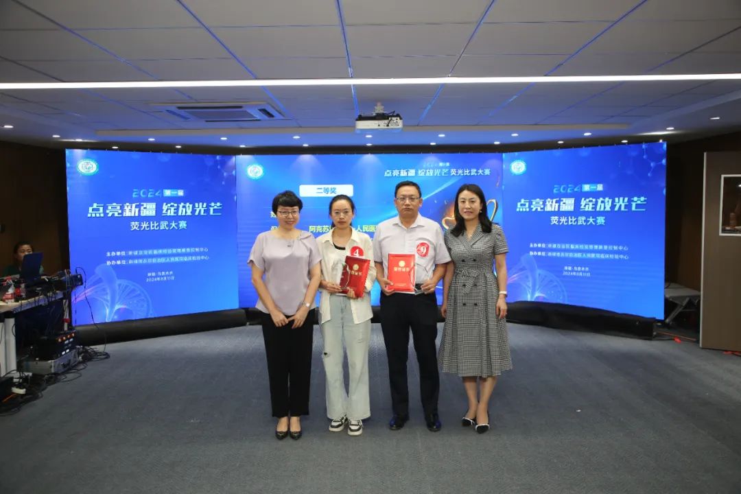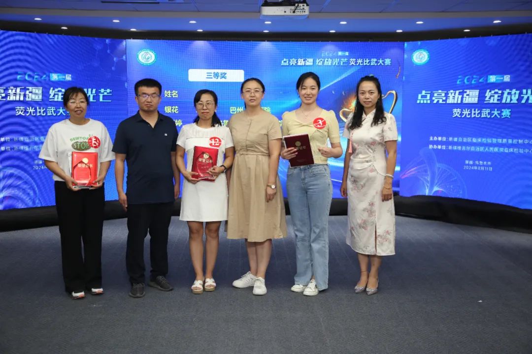 8月11日,第一届“点亮新疆 绽放光芒”荧光比武大赛在新疆医院会议中心举行。此次竞赛吸引了全疆众多医学检验专业人员参加。初赛从7月15日开始,通过“网络海选+现场竞赛”的方式,依据初赛成绩选出32人参加现场半决赛、决赛。比赛当日,以现场限时答题的方式,最终角逐出12人参加决赛。决赛分为必答题、抢答题、互选题、案例题四个环节,主要考察参赛选手对荧光载片判读基础知识的掌握程度及实际案例思维能力。竞赛过程中,参赛选手有序作答,比分互相追逐不相上下,展现了高度的专注力和专业的技术能力。经过激烈角逐,12位参赛选手分别荣获一等奖、二等奖、三等奖和优胜奖。检验评委专家一一进行点评。