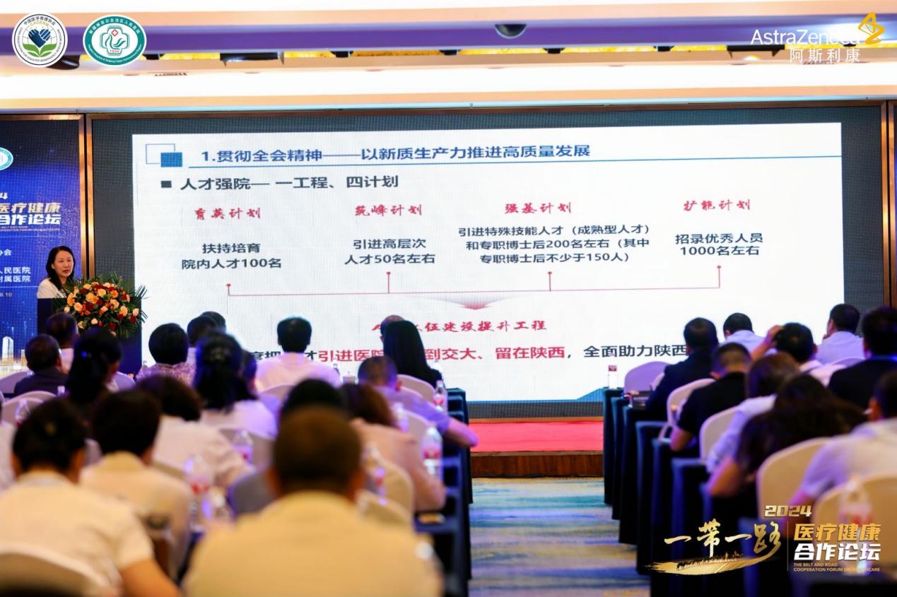 在2024年“一带一路”医疗健康合作论坛上,西安交通大学第二附属医院党委书记刘昌作了《求真求实求效,推进医院高质量发展》的经验分享,她从思想引领,坚持党的领导求真见效;一贯到底,党建业务融合走深走实;守正创新,推进医院发展提质增效三个方面,深刻讲解了坚持用习近平新时代中国特色社会主义思想凝心铸魂,深化医药卫生体制改革,推动公立医院高质量发展,必须于变局中谋新局,在危机中育新机,以新质生产力推进高质量发展。医院凝聚国家所需,人民所盼,聚思想,凝共识,广开路径,完善政治建设和政治监督机制,建立五级工作体系,明确“339”发展思路,制定“12310”强院目标,实施党建强科行动计划;高效共享用存量,协同创新要增量,颠覆思维求质量,凝聚合力,推进医院发展提质增效。