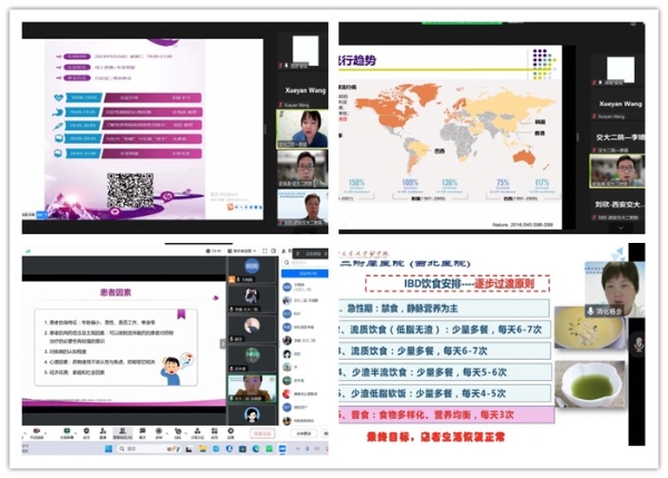 四场科普宣教由消化内科护士李嫱组织并主持,消化科刘欣教授开场致辞,设置了疾病知识健康宣讲、专家答疑及有奖问答三个环节。首先“爱之园”团队的医护人员进行疾病知识方面的健康宣讲,随后,对病友们在线上提出的问题进行一一解答,最后针对宣教的内容设置了有奖问答,回答正确的病友可获得科室精心准备的炎症性肠病科普书籍一本,即鼓励了病友们听课的积极性,还提高了健康宣教的效率,帮助患者有效掌握了宣教的内容。活动中还特意邀请了一些老病友来分享,王先生便是其中一位。王先生在没有得到规范的治疗前,深受溃疡性结肠炎折磨,每天脓⾎便30次以上,⼏乎⼀整天都在往返卫⽣间的路上,同时伴有剧烈的腹痛和发烧,体重下降到不足80斤。随后王先生在朋友的推荐下来到我院消化内科炎症性肠病“爱之园”团队寻求帮助。刘欣教授为王先生制定了一套适合他病情的个体化治疗方案,慢慢地病情得到了有效的控制,王先生对生活再次燃起了希望。住院期间,团队的护士也耐心地讲解着疾病相关的知识和注意事项,使王先生了解到这个疾病需要长期的规范化治疗,在治疗的同时也需要自己对自身生活及饮食严格管理。出院时刘欣教授邀请王先生加入到了他们的医患交流微信群里,这里全都是炎症性肠病的患者,有专业的医护管理,出院后不管遇到任何问题,可以随时随地在群里咨询,免去了复查预约的很多麻烦。“爱之园”团队线上宣教王先生已参加多年,病友们在一次一次的讲座中对疾病有了更加深刻的了解,也重拾战胜病魔的信心,与各位医护共同为健康努力着。“肠”路慢慢修远兮,吾将上下而求索。消化内科炎症性肠病“爱之园”团队将继续为炎症性肠病患者的健康保驾护航。