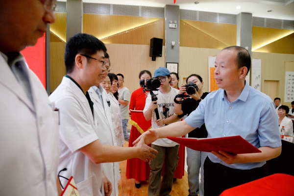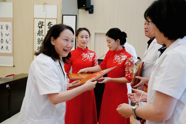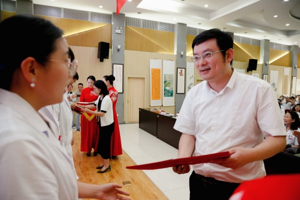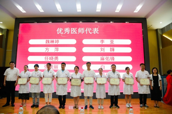 戴一副院长、李文博总会计师为优秀医师代表颁奖
