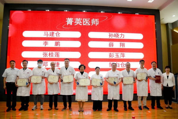李小鹏副院长、党变玲副书记为菁英医师代表颁奖