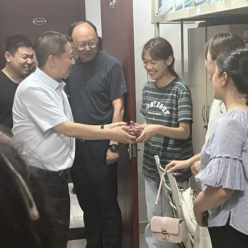 18日早8点,西安交通大学党委书记卢建军、校长王树国,我院党委书记刘昌教授和滕文葆副书记等领导先后来到迎新现场,与前来咨询的学生及家长进行了交流。我院两位书记热情地向二附院新生介绍了医院的基本情况,并对同学们未来五年的发展给予了殷切期望。18日晚7点,李小鹏副院长带领我院辅导员、班主任一行人在书院领导的陪同下到本科生新生宿舍走访慰问。走访过程中,老师们与同学们亲切交谈,仔细了解他们的个人情况、对学校住宿和饮食条件的感受、对学院和专业的理解等,并勉励他们尽快融入新环境,平稳完成过渡,打好专业基础。