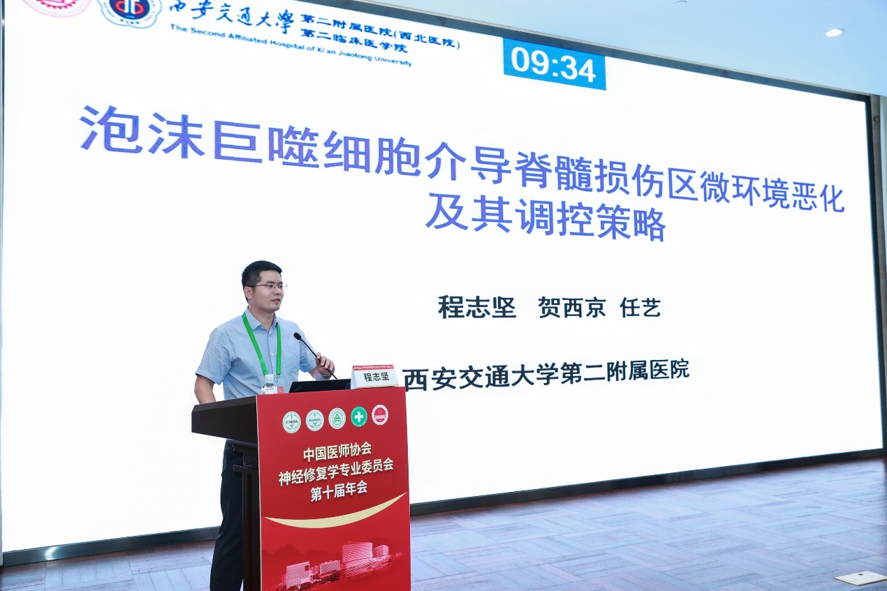 此次年会不仅是一个学术交流的平台,更是一个促进跨学科合作的契机。在年会上,秦杰副教授进行了《世界首例人工寰枢关节置换术的长期随访研究》的演讲,程志坚主治医师进行了《泡沫状巨噬细胞介导脊髓损伤区微环境恶化及其调控策略的演讲》。这些青年学者的成长和进步,无疑为团队注入了新的活力和动力,也为我国神经修复事业的未来发展奠定了坚实的人才基础。