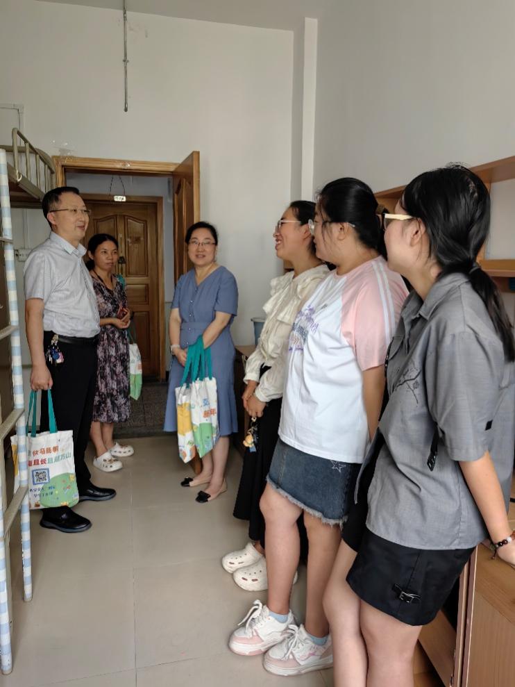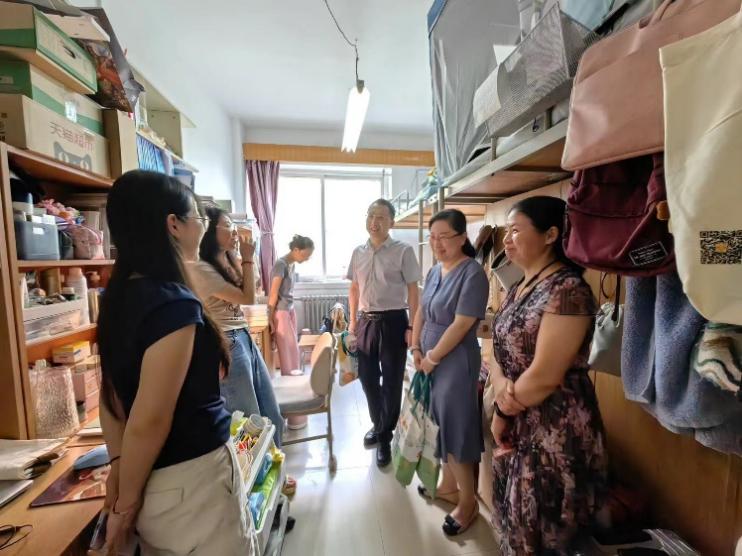 “本科来自哪个学校的?”、“什么时候到校的?”、“学习哪个专业?导师是谁?”、“宿舍收拾好了吗?”、“暑假有没有提前开始科研准备?”……9月6日上午,我院滕文葆副书记带领学工部主任吕晔、两位研究生辅导员一起走访了雁塔校区2024级研究生新生宿舍。滕书记与新生们亲切交谈,送上我院定制的新生指南和礼物,并认真了解了宿舍设施、物资供应、食堂、通勤等情况,征求同学们对二院的意见建议。同时,他鼓励同学们要珍惜青春年华,尽快融入研究生生活,适应从医学生到临床医生的身份转变,开启新的人生篇章,同事提醒同学们要在繁忙学习和临床工作之余,加强体育锻炼,收获身体健康、学业进步和人格养成的全面成长成才。