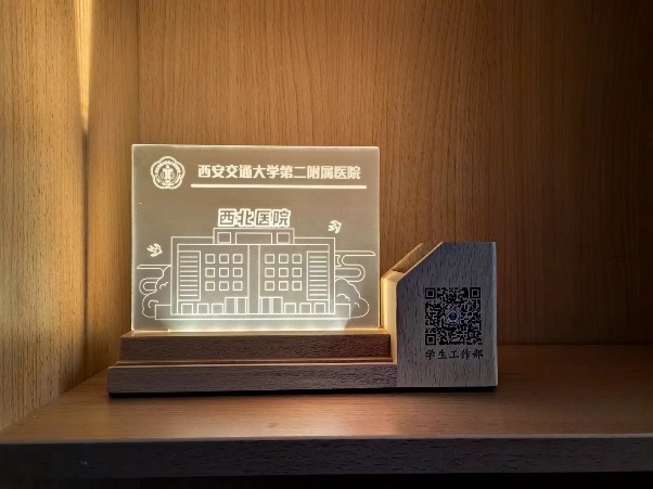 2024年的新生指南除了我院综合情况的全面介绍,还有我院各个相关职能部门、各校区相关单位常用电话和学校心理健康教育与咨询中心的联系方式,以备同学们急需时随手可查。新生文创品以我院医疗大楼为主题,带有院徽院名,集合了夜灯、笔筒、手机支架等功能。夜灯的白光模式清新明亮,能够帮助提高注意力,配合医疗主楼的图像,象征着在医学的道路上,医院与大家同向同行,激励同学们认真学习、苦练技能,为我院医疗事业建设发展锐意进取。夜灯的暖光模式温暖舒适,能让同学们放松舒缓,象征着我院全体教职员工对学生的爱与温情,让同学们在疲惫和困惑中缓解压力汲取力量,在医院的强大支持下直面困难与挑战。