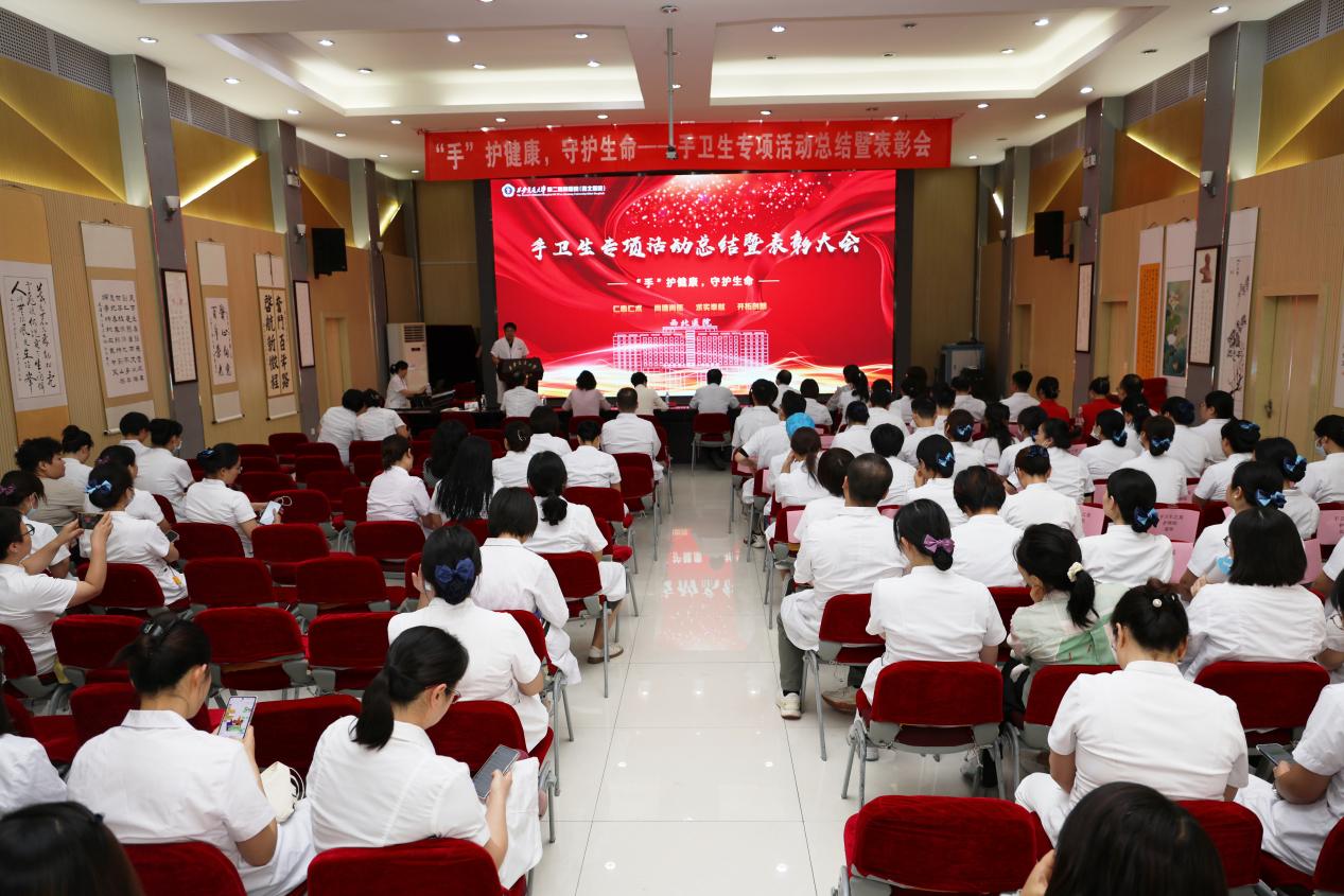2024年9月10日下午,医务部医院感染管理办公室在多功能厅举办手卫生专项活动总结暨表彰大会。张蓬勃副院长、党变玲副书记、护理部杨惠云主任、医务部王虎清常务副主任、三甲办张正良副主任、麻醉科赵丽燕护士长、医院感染管理办公室全体人员、临床医技科室感控医护、手卫生之星、手卫生督导员等150余人参加了大会,大会由医务部张晨副主任主持。