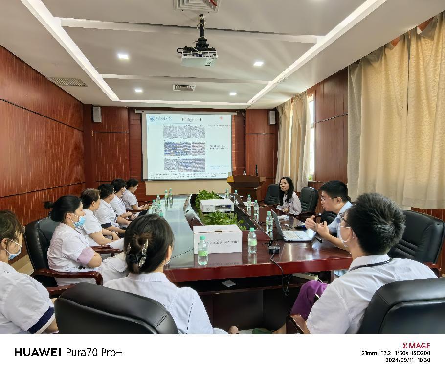 9月11日,老年心血管内科邀请材料学领域权威专家—西安交通大学材料学院郭靖教授进行临床研究专题讲座,郭教授从不同角度深入剖析了材料学的应用与发展前景,并为老年心血管内科医生和护理人员带来了一场知识的盛宴,讲座在干部六楼举办,由丁铭格副主任主持。