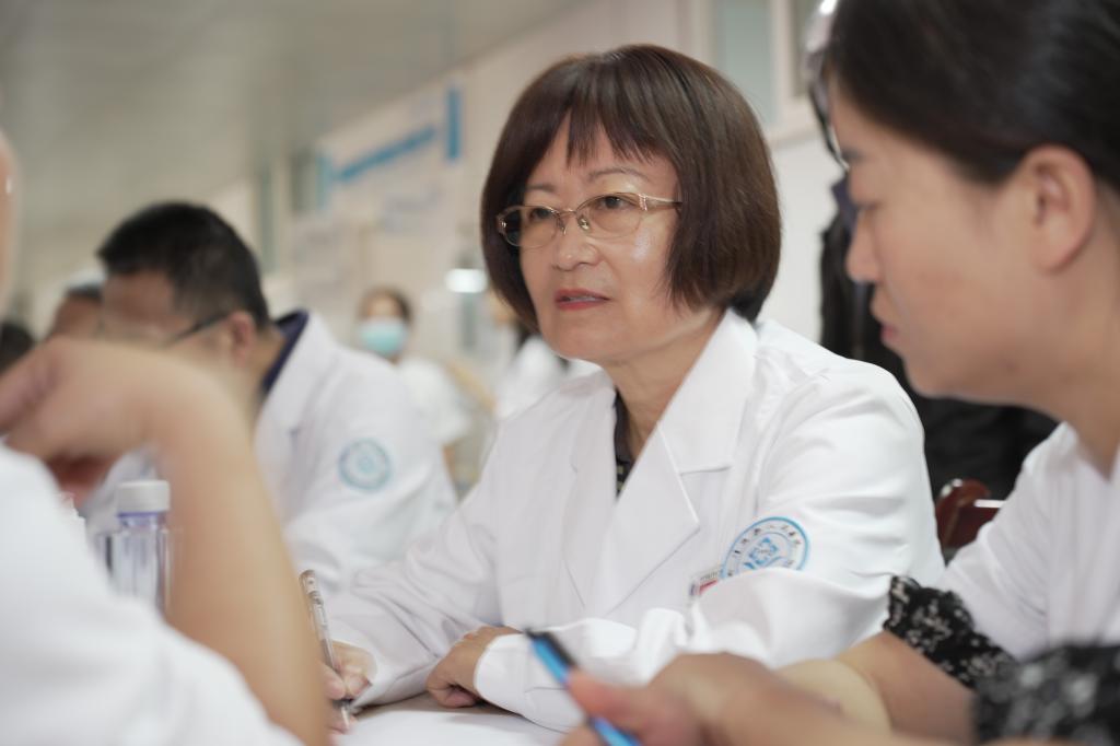 高艳娥主任医师为前来就诊的患者朋友查看检查报告、向患者朋友解释各项检查结果,给出预防、治疗妇科病的专业性指导。她还专门来到病房,与当地医生就收治的妇科疑难患者交流了诊疗措施并给出了建设性意见。一位高教授十几年前做过手术的患者更是激动地带全家人赶过来感谢:“真的太感谢您了,十多年前您挽救了我的生命。知道您今天要来,我们全家人都特地赶过来谢谢您!”
