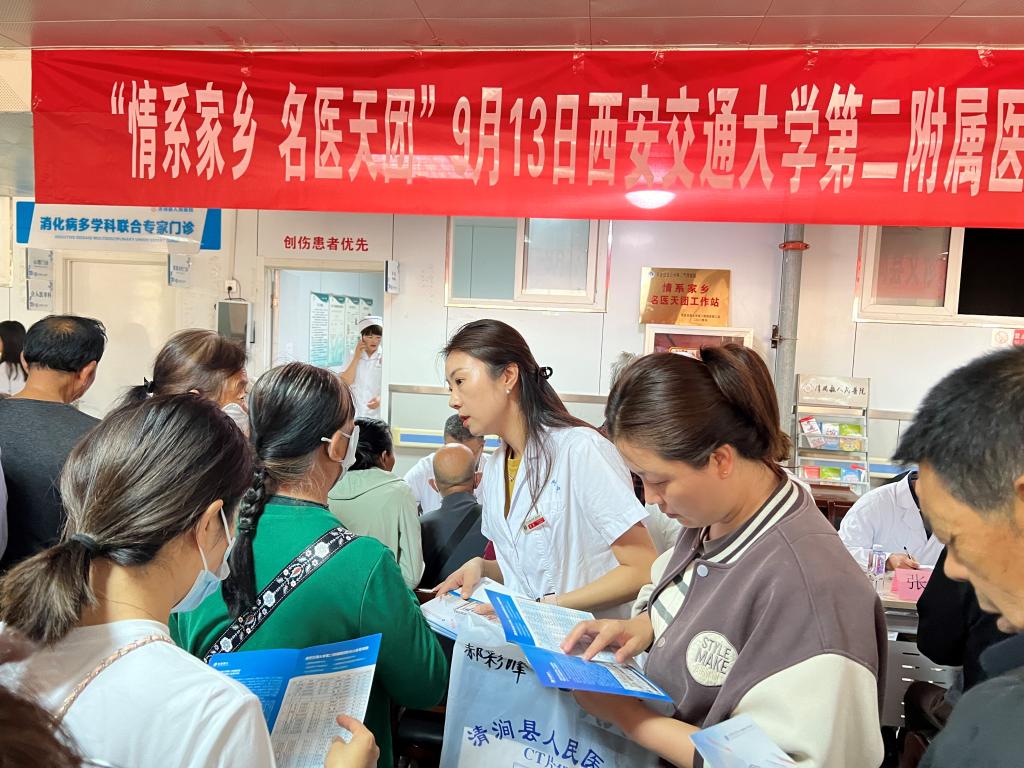9月12-13日,西安交通大学第二附属医院多学科专家团队赴清涧县人民医院开展“情系家乡,名医天团”义诊活动。活动由院党委委员董新带队,妇产科主任医师高艳娥、乳腺诊疗中心主任医师闵卫利、骨科中心关节与足踝外科副研究员马瑞、普通外科副主任医师张健、老年内分泌代谢/呼吸内科住院医师香雪、心血管病院住院医师刘珍珍、主管护师雷蕾、主管护师惠静、护师王利、麻醉手术科护士王泽宇共11位医疗护理专家参加。义诊团队为清涧县人民提供了疾病问诊、健康查体、科普宣教等医疗服务,同清涧县人民医院就疾病诊疗、手术操作、科研学术、医院建设等方面进行了深入的沟通交流。