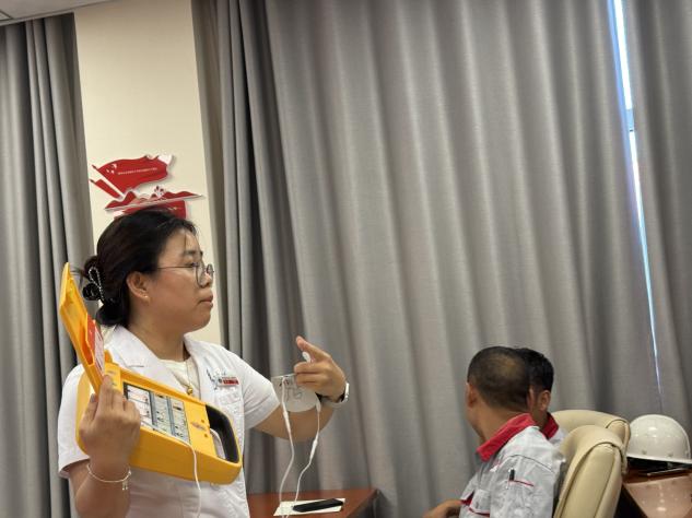 活动伊始,杨妮医生凭借着细致入微的讲解以及生动鲜活的案例,深入阐释了心肺复苏的重要意义与实施步骤。她将理论与实践有机结合,力求让每一位参与者都能快速掌握CPR的核心技巧,同时着重强调了急救“黄金四分钟”的关键作用。紧接着,杨妮医生还现场展示了自动体外除颤器(AED)的正确使用方法。