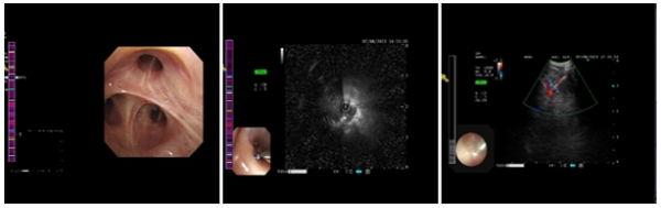 支气管内超声是介入呼吸病学的一项重要诊断技术,主要包括辐状探头支气管内超声(R-EBUS)和凸面探头支气管内超声(C-EBUS)。R-EUBS可用于研究气道壁结构、评价肿瘤对支气管壁的浸润程度、引导纵隔病变透支气管壁活检、诊断肺外周病变并引导活检等;C-EBUS主要用于纵隔病变和中央气道周围肿物或淋巴结活检,最常用于恶性肿瘤的诊断和肺癌分期。在我院呼吸与危重症医学科的援助下,洛阳市中心医院呼吸与危重症医学科已常规开展R-EBUS和C-EBUS等检查,为豫西人民健康保驾护航。