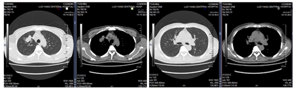 61岁的老陈(化名)近日因血糖控制不佳于洛阳市中心医院内分泌科住院治疗,期间患者要求行肺部健康检查,结果胸部CT提示右肺上叶占位性病变并纵膈淋巴结稍肿大(图1)。患者本人及家属非常紧张,通过内分泌科主管医师请呼吸科会诊,经我院常驻洛阳市中心医院专家董西林教授及洛阳市中心医院呼吸科张娜莉主任共同会诊后,考虑肺结核可能性大,不能除外肿瘤,与患者家属充分沟通病情,并建议转入呼吸科进一步行超声支气管镜检查明确肺部病灶性质,征得患者同意于八月初转至呼吸与危重症医学科三病区进一步诊治。