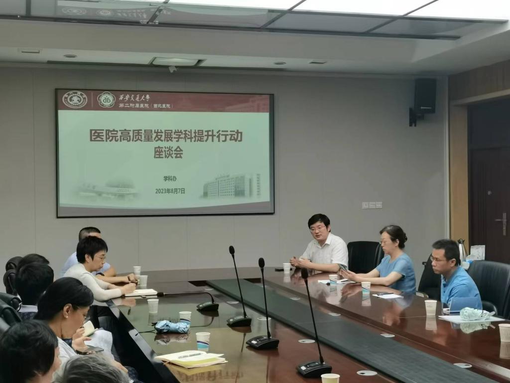 2023年8月7日,为了推动医院的高质量发展与学科提升,我院学科建设办公室组织召开医院高质量发展学科提升行动座谈会。戴一副院长、学科办刘朋飞副主任等参会。会议由学科办纪泛扑主任主持。