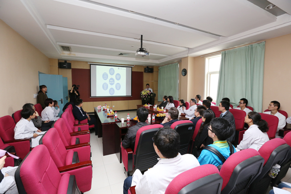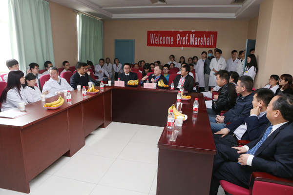 在医院综合大楼六楼示教室欢迎仪式上,院长贺西京教授全程英文为来宾介绍了我院的历史变迁,近年来在医教研全方位稳步发展的态势。Marshall教授对贺西京院长发言表示十分赞赏。在交流会上,Marshall教授风趣地回答了有关媒体记者的提问。