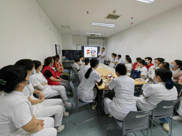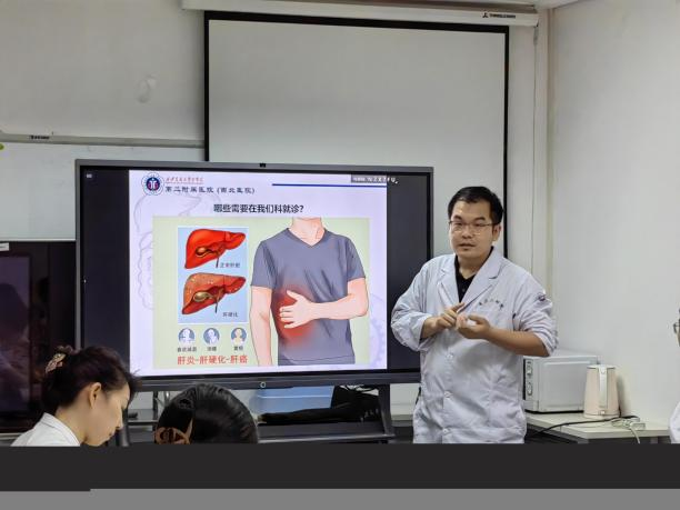 7月27日下午,我院肝胆胰脾与肝移植外科曲凯副主任医师及团队成员为门诊工作人员讲授了肝胆胰脾与肝移植外科相关疾病的分诊知识,门诊护理人员,自助机志愿者,窗口工作人员及预约挂号等相关人员参加培训。