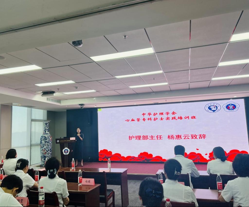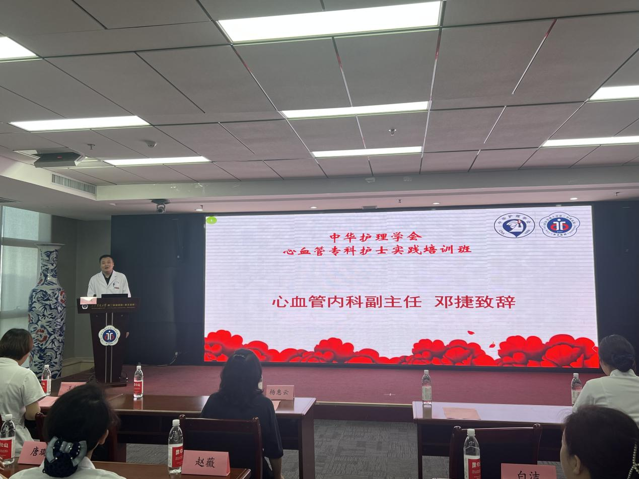 8月3日上午,2023年中华护理学会心血管专科护士临床实践开班典礼在大明宫院区心血管病院举行。护理部主任杨惠云、心血管内科副主任邓捷、心血管外科、心血管内科各病区副护士长、实践带教老师及专科学员参加了开班典礼。典礼由基地负责人、心血管内科护士长王蓉主持。