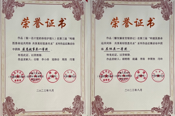 《做一名37度的体检护理人》获医患故事一等奖,该故事以体检护理的视角出发,与患者感同身受,点滴中为患者着想;《糖友膳食宝塔游记》获得其他类一等奖,该作品用生动有趣的方式讲述了“糖友”的日常食谱搭配,为患者带来有价值的科普知识。《生命的快道》《心桥》获得微视频类二等奖;《李鹏教授:让孩子健康的活一辈子》《祝!康复!》获得故事类二等奖;《动起来,对结石说拜拜!》《关于人工授精那些事儿》获得其他类二等奖。