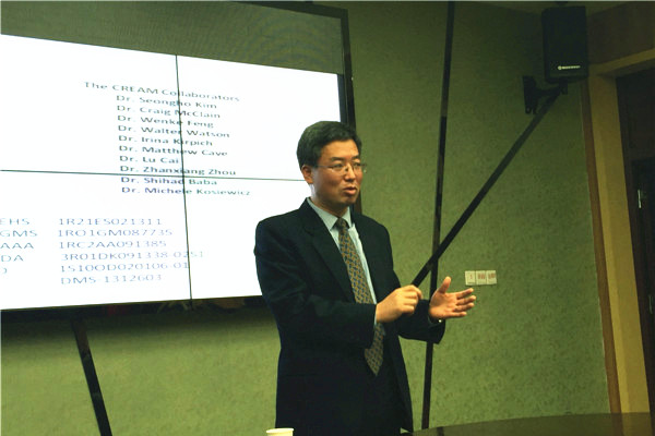 张翔教授是路易斯维尔大学医学院的药理和毒理学教授,代谢分析和调节研究中心主任。多年来致力于实用高效药物的开发,目前已发表学术论文125篇。学术交流中,张翔教授就目前代谢组学研究中的常见流程以及其领导的学术团队独创的统计平台与在场的科研人员进行了充分的探讨交流。张教授的演讲既有理论支持,又有实例佐证,生动翔实,深入浅出。与会人员结合各自的关注的内容,就质谱分析在疾病研究中的应用不断提问,交流活动持续2个小时,现场气氛热烈,交流双方均感到受益良多。