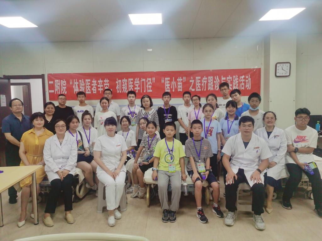 根据交大二附院工会“医小苗”系列活动方案, 7月26日上午,院工会联合临床科室、临床技能实验教学中心开展“医小苗”系列之医疗跟诊与实践活动,来自全院不同科室职工的23名“医小苗”走进医院部分病区和技能教学中心,观摩医护工作场景,学习和体验心肺复苏和外科包扎、模拟支气管镜手术,通过亲身实践,感受医学的严谨和责任,体验父母的辛劳。
