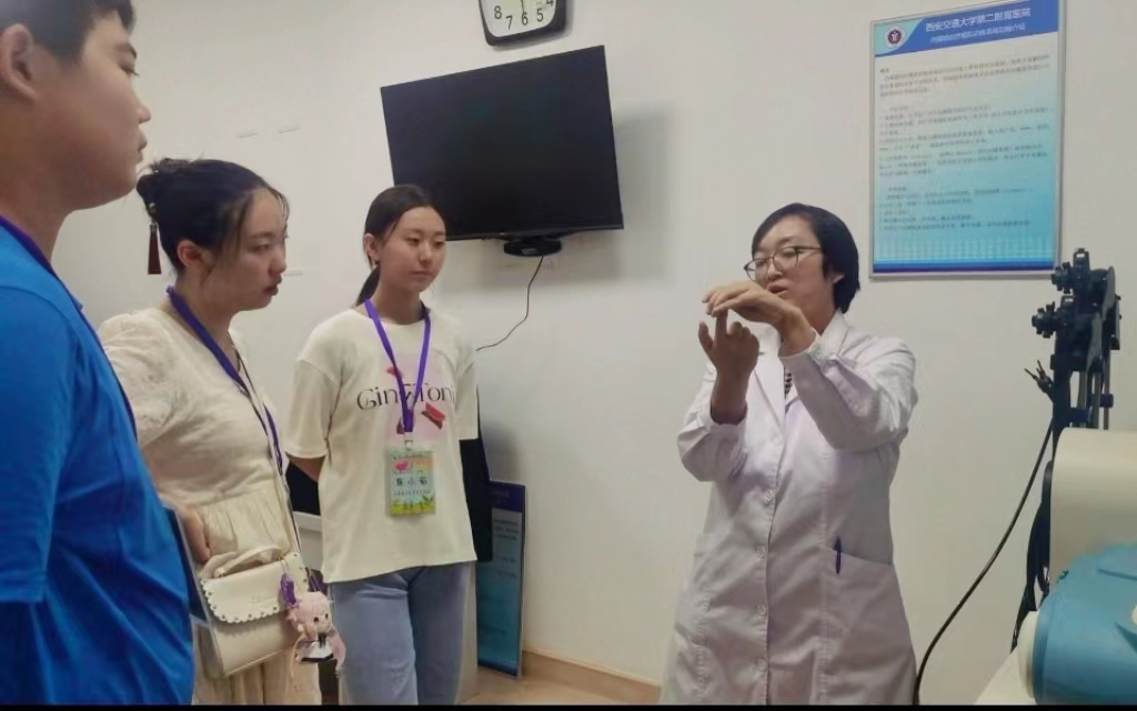 上午8点,在门诊大厅前,党委副书记党变玲寄语参加活动的孩子们,珍惜当下、努力学习、成长成才。“医小苗”们佩带上胸牌,在带教老师的引领下2-3人一组分别到达骨二科病区、耳鼻咽喉头颈外科门诊、眼科病区、康复医学科治疗室、神经外科病区、理疗室、中草药房以及喉镜检查室等,观摩学习不同科室医生为患者诊治,跟着护士进行晨间护理和治疗。