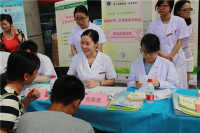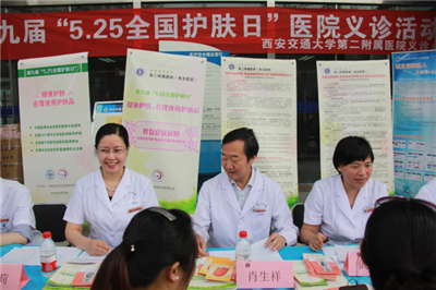 今年5月25日是第九届全国护肤日,为配合中国医师协会皮肤科分会宣传皮肤健康护理,合理使用护肤品,推广新发布的护肤品皮肤科应用指南,西安交通大学第二附属医院皮肤病院于5月 25日上午在门诊大楼举行了“关注皮肤健康·创建完美肌肤”的义诊活动,并举行了健康美丽肌肤大讲堂和激光美容优惠活动。义诊现场参加活动患者及爱美人士约 300人,取得了较好的科普宣传效果。